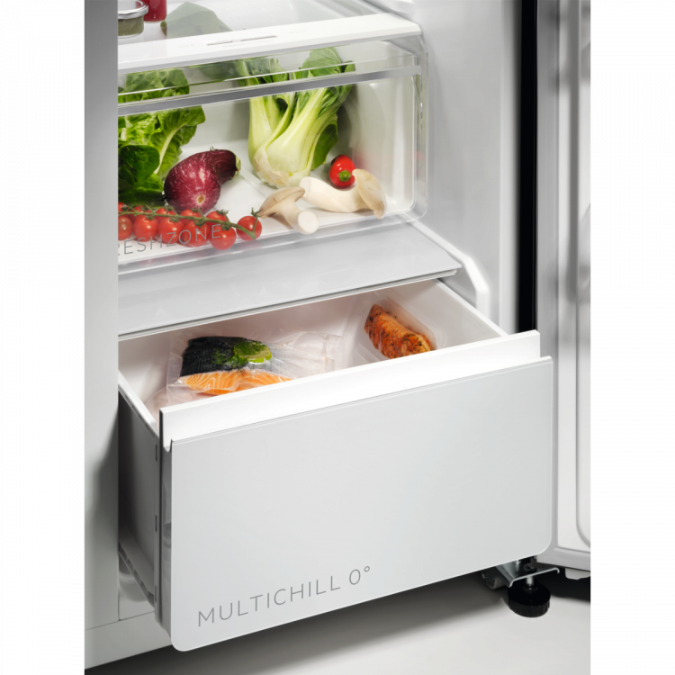 SIDE BY SIDE NO-FROST LIBRE INSTALACIÓN Serie 9000, Multichill 0ºC, 1,77m x 90 cm., 593L, Look Inox (VCM), dispensador Agua y Hielo, No Frost Multiflow, Cooling 360º, Display en la puerta, cajón Multichill 0ºC,cajón Freshzone con control de humedad, compresor inverter, clase D