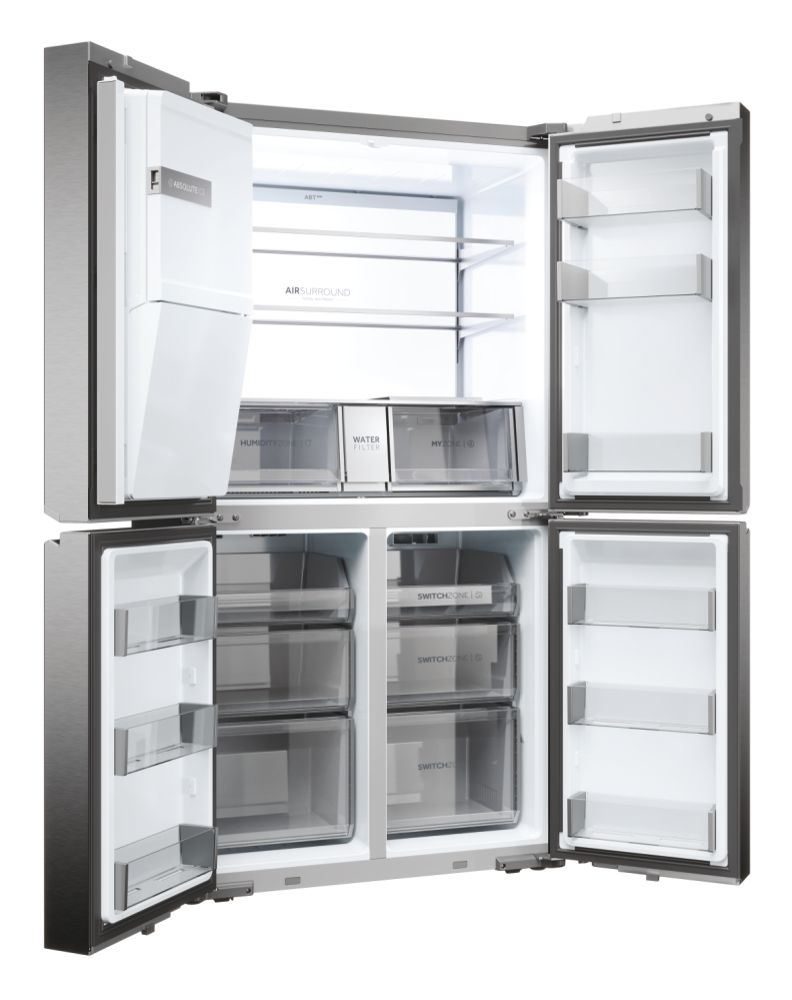 Frigo Americano 177cm 90,5cm HAIER 34004988 HCR7918EIMP 601L Inox Clase E Libre Instalación - FRIGORÍFICO CUBE 4 PUERTAS - HCR7918EIMP - Medidas: 177,5 x 90,5 x 73,8, Clase Energética: E, Capacidad: 601L, Color: Platinum Inox - Dispensador Agua/Hielo con toma - - ABT - Switch Zone