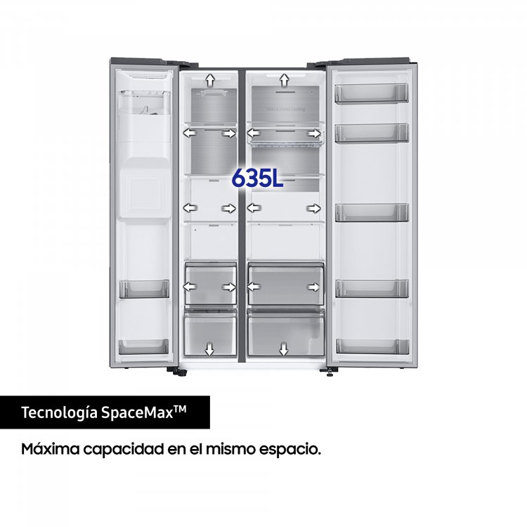 Sbs 2 Puertas Sbs 2 Puertas Clase: C 635L 35Db 225Kwh/Año Inox Serie 8, Twin Cooling Plus, Smart Conversion, Tirador Integrado, Metal Cooling, Precise Cooling, Botellero, Dispensador Agua Y Hielo.