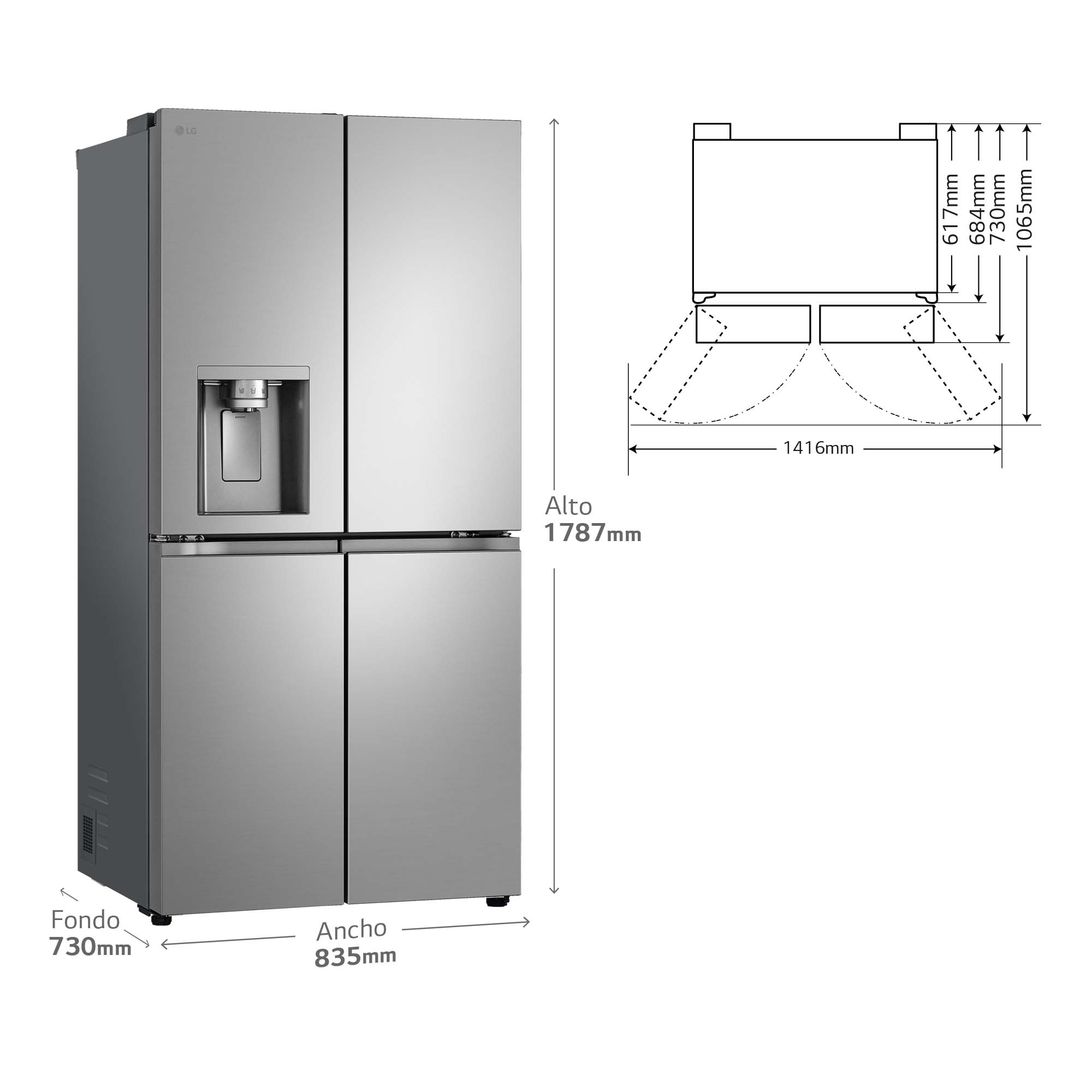 American Combi American Combi GML860PYFE Clasificación Energetica: E Medida: 1,79 x 83 cm Dispensador Agua+Hielo: Si Toma Acabado Exterior: Inox Acabado Interior: Metal Fresh