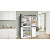 Frigoríficos Multipuerta BOSCH, KMC85LBEA, Frío, Frigorífico Multidoor NoFrost, E, Libre instalación, 183x85x67 cm., 547l., Puertas Cristal negro, Profundidad estándar. Tir.integrado. Infinity Serie 6 Serie 4, Frigorífico French Door con puertas de cristal, 189.5 x 85.5 cm, Negro BOSCH KMC85LBEA Capacidad XXL: espacio adicional para tus alimentos cuando lo necesites. VitaFresh: mantiene los alimentos frescos más tiempo en cajones a una temperatura cercana a los 0 °C. Sistema Multiairflow: Minimiza las fluctuaciones de temperatura asegurando una circulación de aire óptima y uniforme en el frigorífico. Iluminación interior mediante LED: uniforme y eficiente, de larga durabilidad. Tecnología Inverter: control constante de la temperatura dentro y fuera del frigorífico.