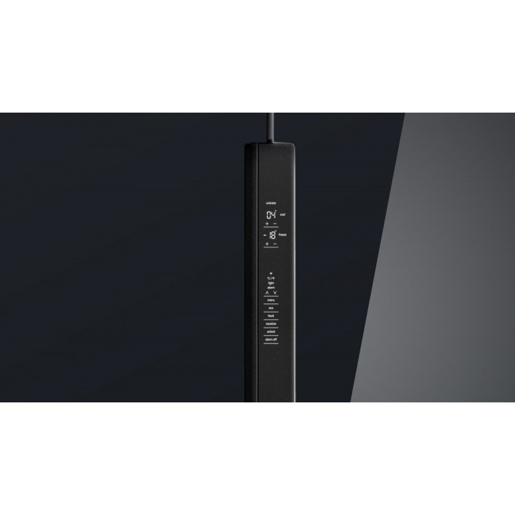 | Control e indicadores | Alarma de avería Alarma de temperatura Alarma puerta abierta Indicador temperatura congelador Indicador temperatura refrigerador Interruptor supercongelación Interruptor superrefrigeración Modo Eco/Vacaciones |