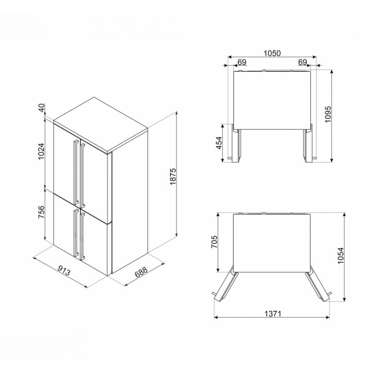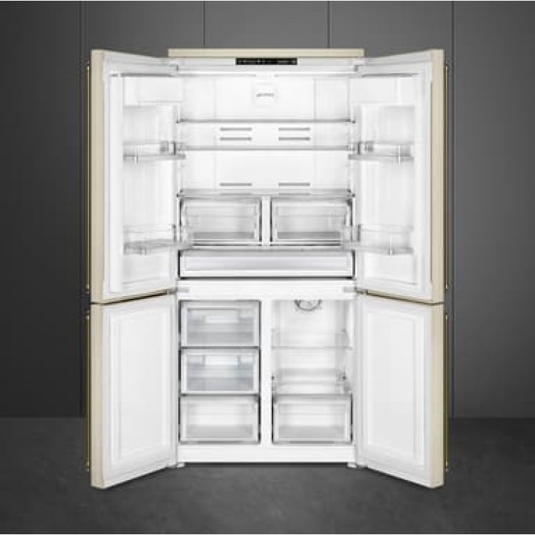 Frigoríficos Estética Colonial Frigorífico 4 puertas Colonial, color Crema, clase energética F, sistema No-Frost total, compartimento de alimentos frescos 385L, compartimento de alimentos congelados 196L - Dimensiones (mm): 1870x915x705- Categoría energética: E