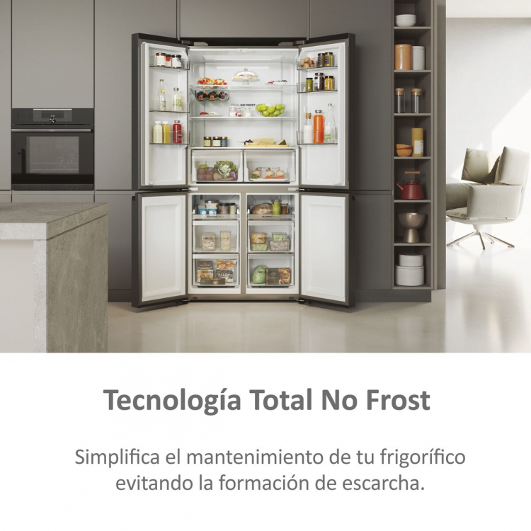 Libre Instalación HCR5919ENMB - Frigorífico Cube 4 Puertas Clasificación energética: E Capacidad: 528 L - Color: Brushed Black