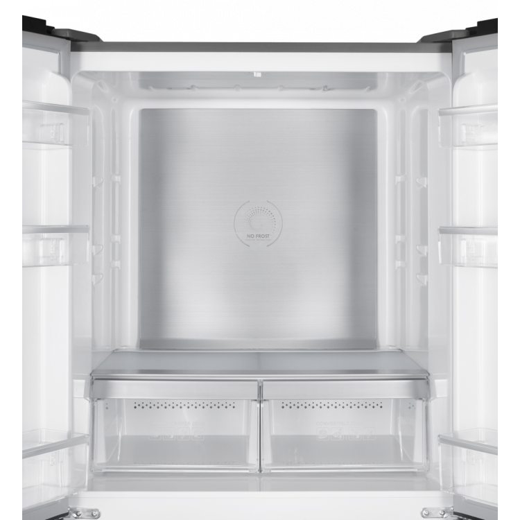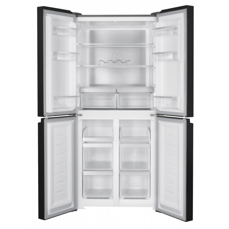 Frigorífico 4 Puertas, Frigorífico 4 Puertas, Capacidad 466L, Inverter, No Frost, Dark Inox, Metal Back Cooling, Display Puerta, Luz LED, Fresh Box, Crisper, 3 Botelleros, Silver Trim, Función Vacaciones y Eco, 39 Db, Eficiencia Energética E, Dimension Producto (ProfxAnchoxAlto mm): 740X795X1800
