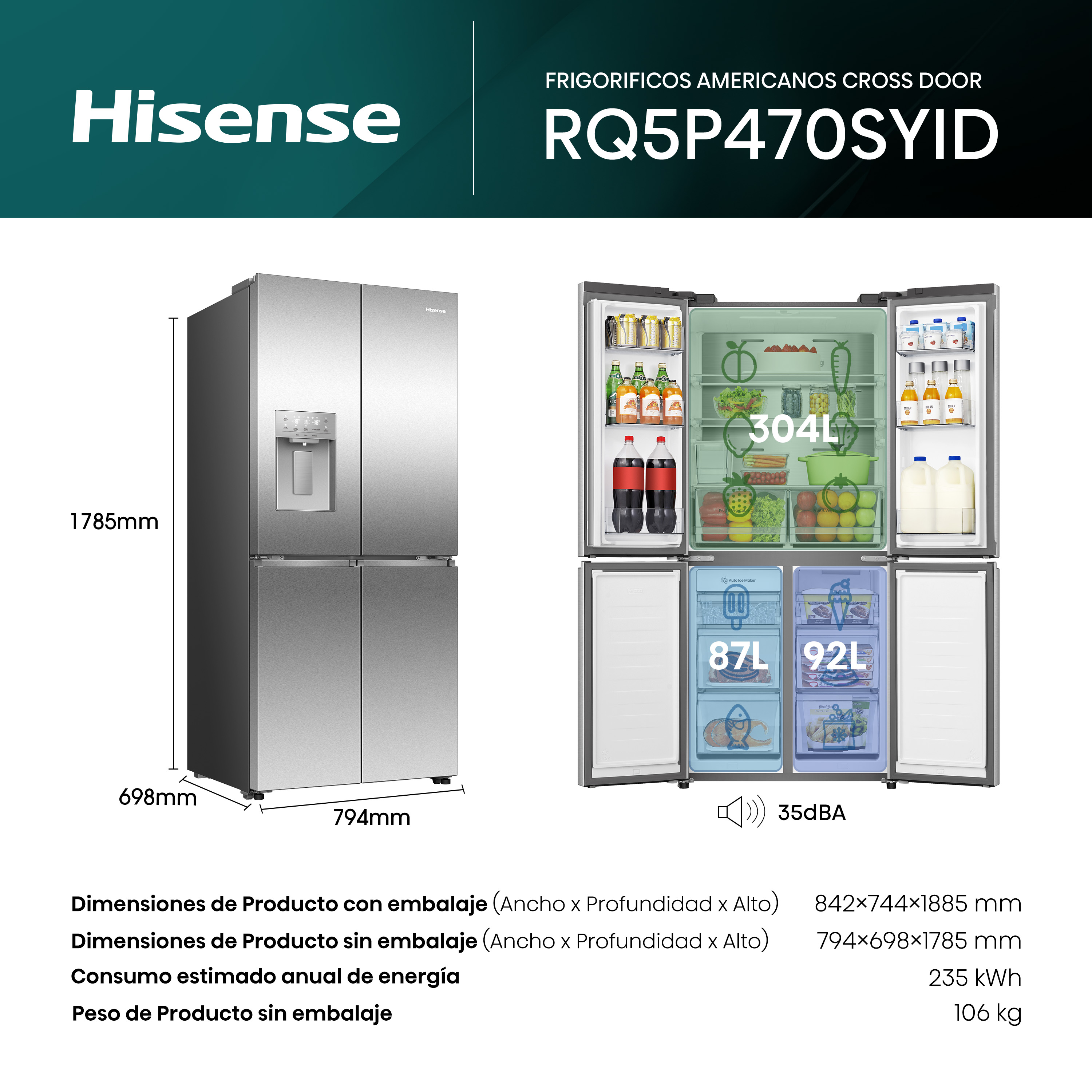 Frigo Americano HISENSE RQ5P470SYID 179x80x70 4P NF INOX DISP