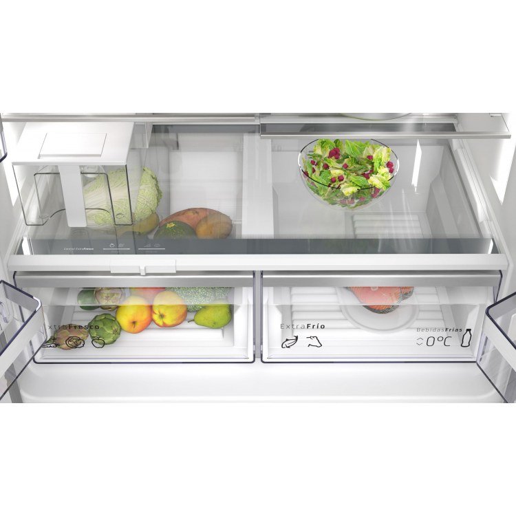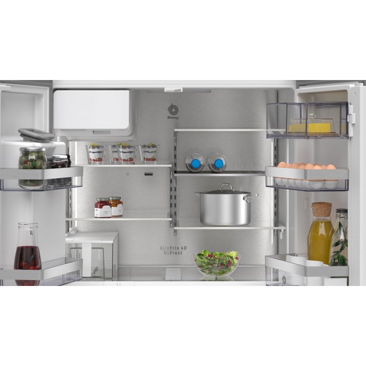 Frigorífico Multipuerta BALAY, 3KME598XI, Frío, Frigorífico multidoor NoFrost, E, Libre instalación, 183x91x73,1 cm., 574 l., Puertas Acero antihuellas, Dispensador de agua y hielo (tanque). ExtraFresco/ExtraFrío. Electrónica exterior. Tirador integrado.