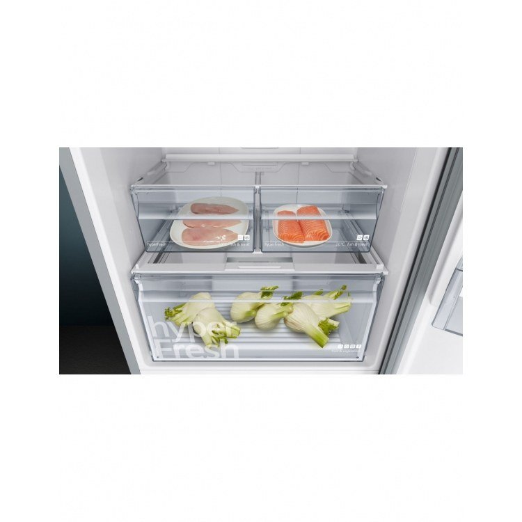 Frigoríficos combinados noFrost IQ300 - SIEMENS, KG49NXIDQ, Frío, Frigorífico combinado NoFrost, D, Libre instalación, 203x70x67 cm., 438 l., Puertas Acero antihuellas, hyperFresh. Electrónica en la puerta.
