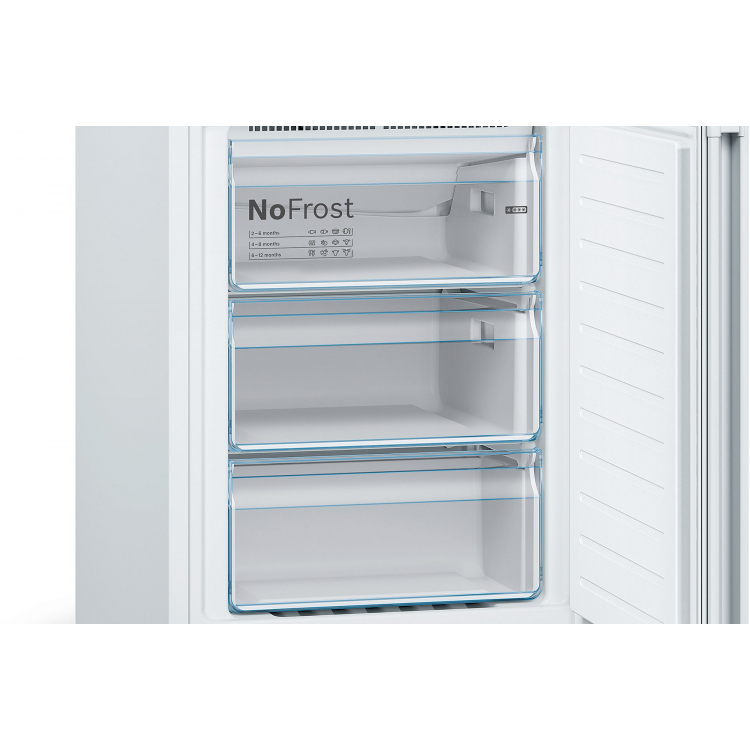Serie 4 Frío, Frigorífico combinado NoFrost, E, Libre instalación, 186x60x66 cm., 326 l., Blanco, VitaFresh. Tirador vertical integrado.