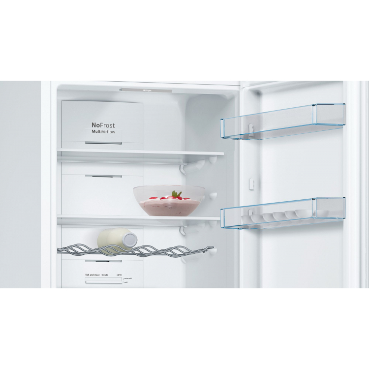 Serie 4 Frío, Frigorífico combinado NoFrost, D, Libre instalación, 186x60x66 cm., 326 l., Blanco, VitaFresh. Tirador vertical integrado.