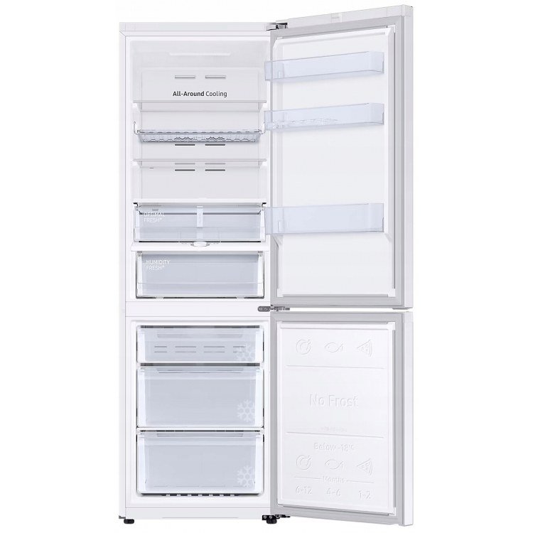 REF - 1,85 M 60CM RB34C675DWW/EF - SMART con AI, Display exterior, All around cooling, Tirador integrado, Balda Botellero, Compresor Digital Inverter, Monocooling, con 2 cajones uno de elllos con optimal fresh y el otro Humidity fresh. Clase energética: D Capacidad: 341 L Wifi Decibelios: 35 Consumo: 233 Acabado: Blanco Táctico Grupos de Compra