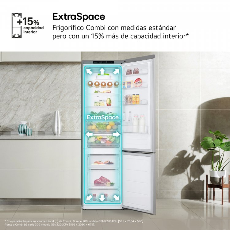 Frigo Combi Inox LG GBV3200CPY 203cm x 59,5cm Clase C