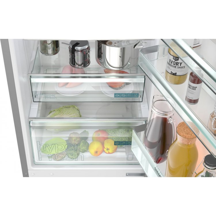 - hyperFresh <0°>: Más espacio para las frutas y verduras.Un cajón de baja temperatura para el pescado y la carne.