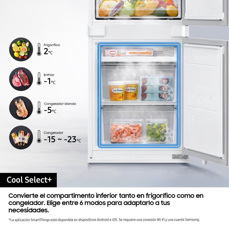 SMART con AI, Twin cooling Plus, Metal Cooling, Display interior, Balda Botellero, Doble cajón con optimal fresh y humidity fresh, Cool Select plus en el congelador., CLA D, 298 L, Wifi, Encastre