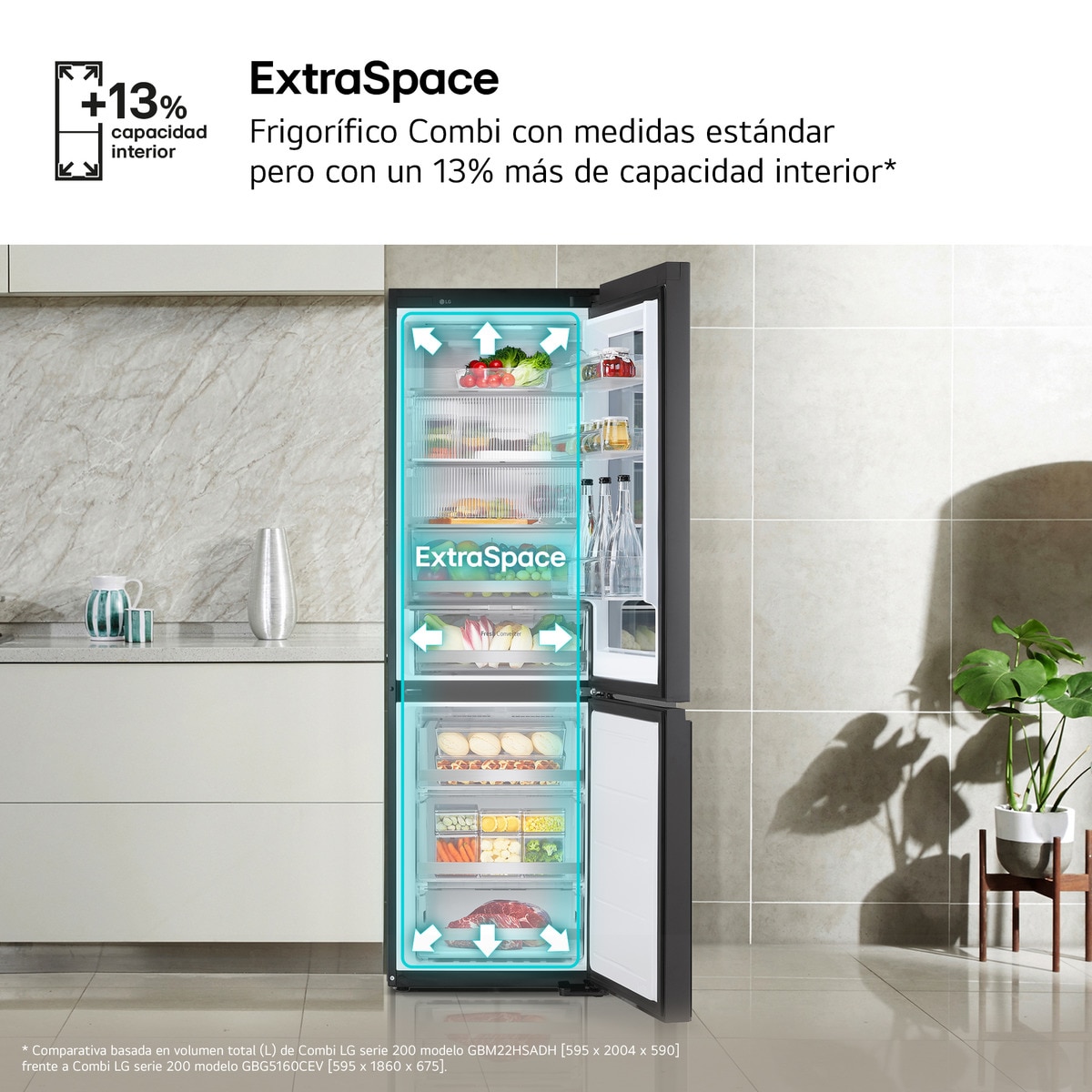 Frigo Combi Negro LG  GBG5160CEV 186cm x 59.5cm Clase C Combi 186 Acero Negro Grafito, CLA.C, Instaview