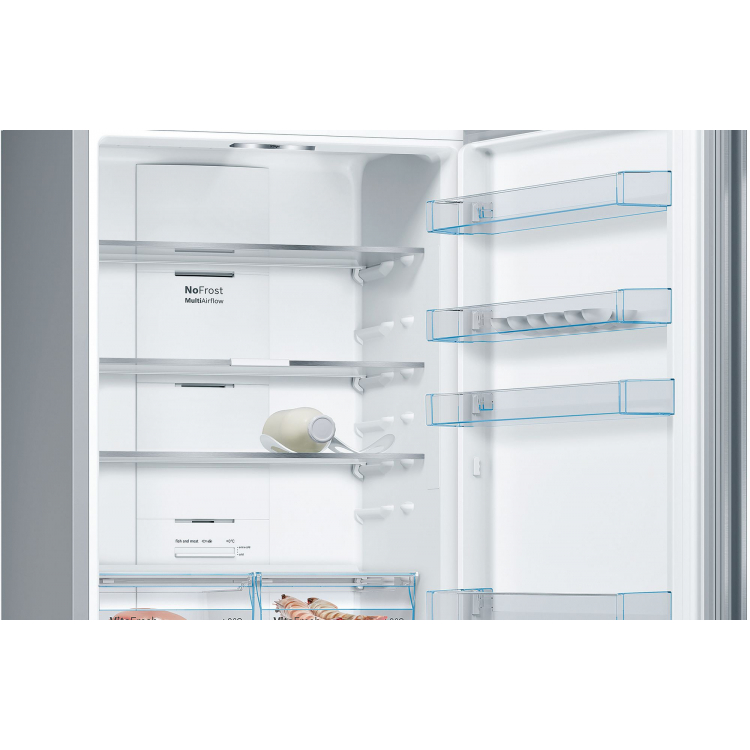 Serie 4 Frío, Frigorífico combinado NoFrost, D, Libre instalación, 203x70x67 cm., 438 l., Puertas Acero antihuellas, Vitafresh. Electrónica Touch Control en la puerta.Tirador vertical integrado.