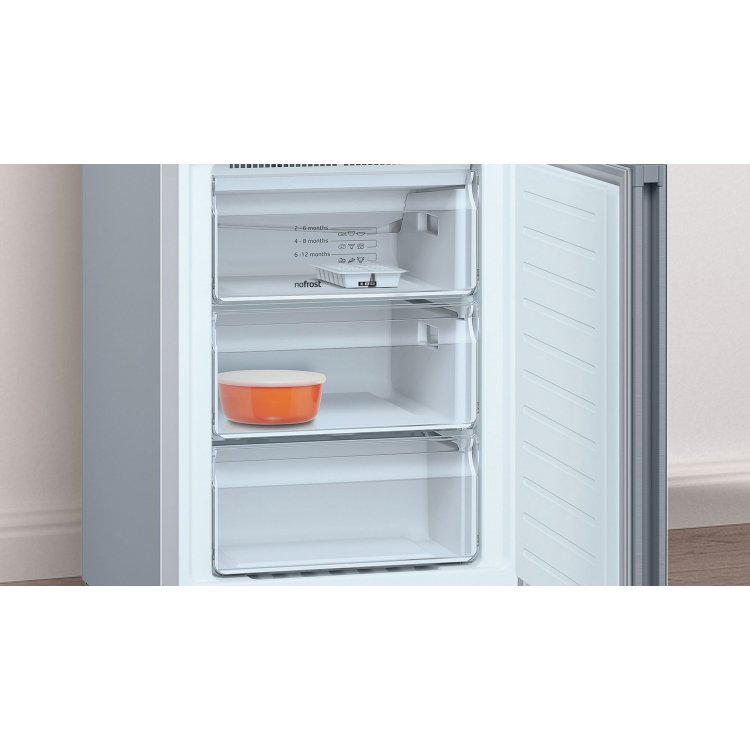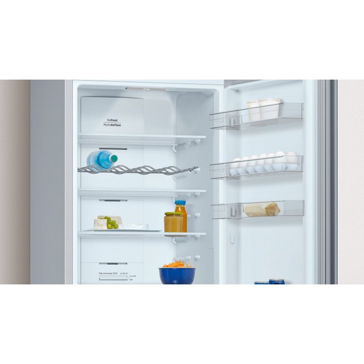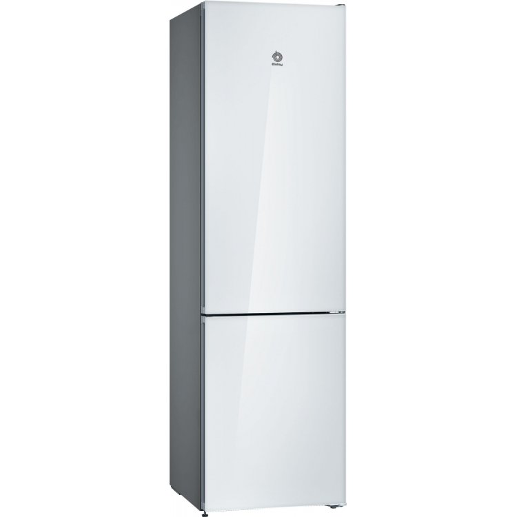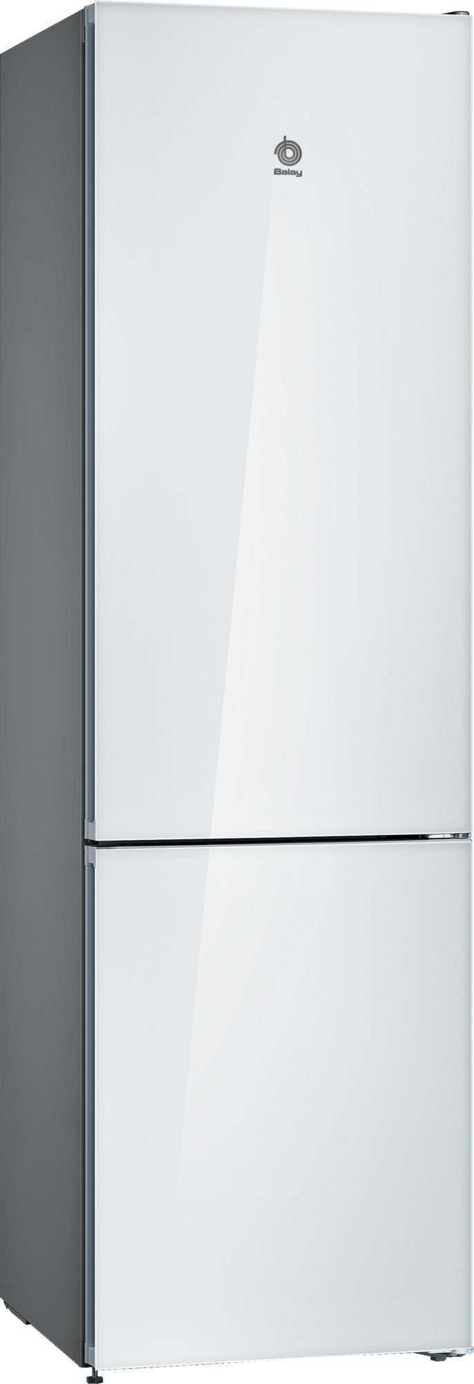 Combinado Extracold/Extrafresh Nofrost Ancho 60 Cm BALAY, 3KFD765BI, Frío, Frigorífico combinado NoFrost, D, Libre instalación, 203x60x66 cm., 368 l., Puertas Cristal blanco, ExtraCold/ExtraFresh. Tirador vertical integrado.