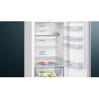 iQ300, Frigorífico combinado de libre instalación, 203 x 60 cm, Blanco, Combi noFrost con sistema de conservación hyperFresh, Instalación sin restricciones, incluso pegado a pared., Acceso a todos los cajones con apertura de puerta a 90º, La iluminación LED permite una perfecta visibilidad del interior del frigorífico