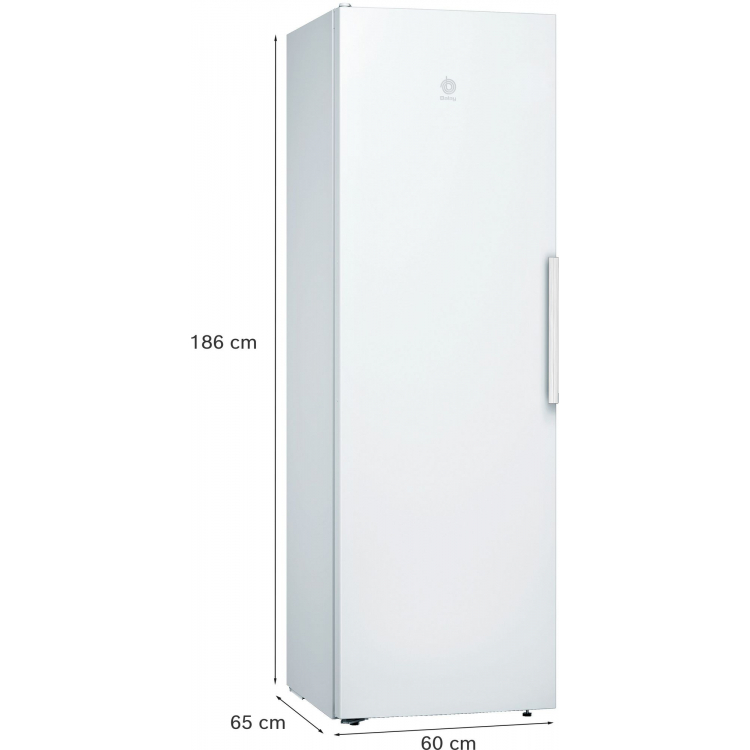 BALAY, 3FCE553WE, Frío, Frigorífico 1 puerta cíclico, E, Libre instalación, 186x60x65 cm., 346 l., Blanco, Tirador FIJO. Cajón para frutas y verduras con regulador de humedad. Combina con 3GFE553WE