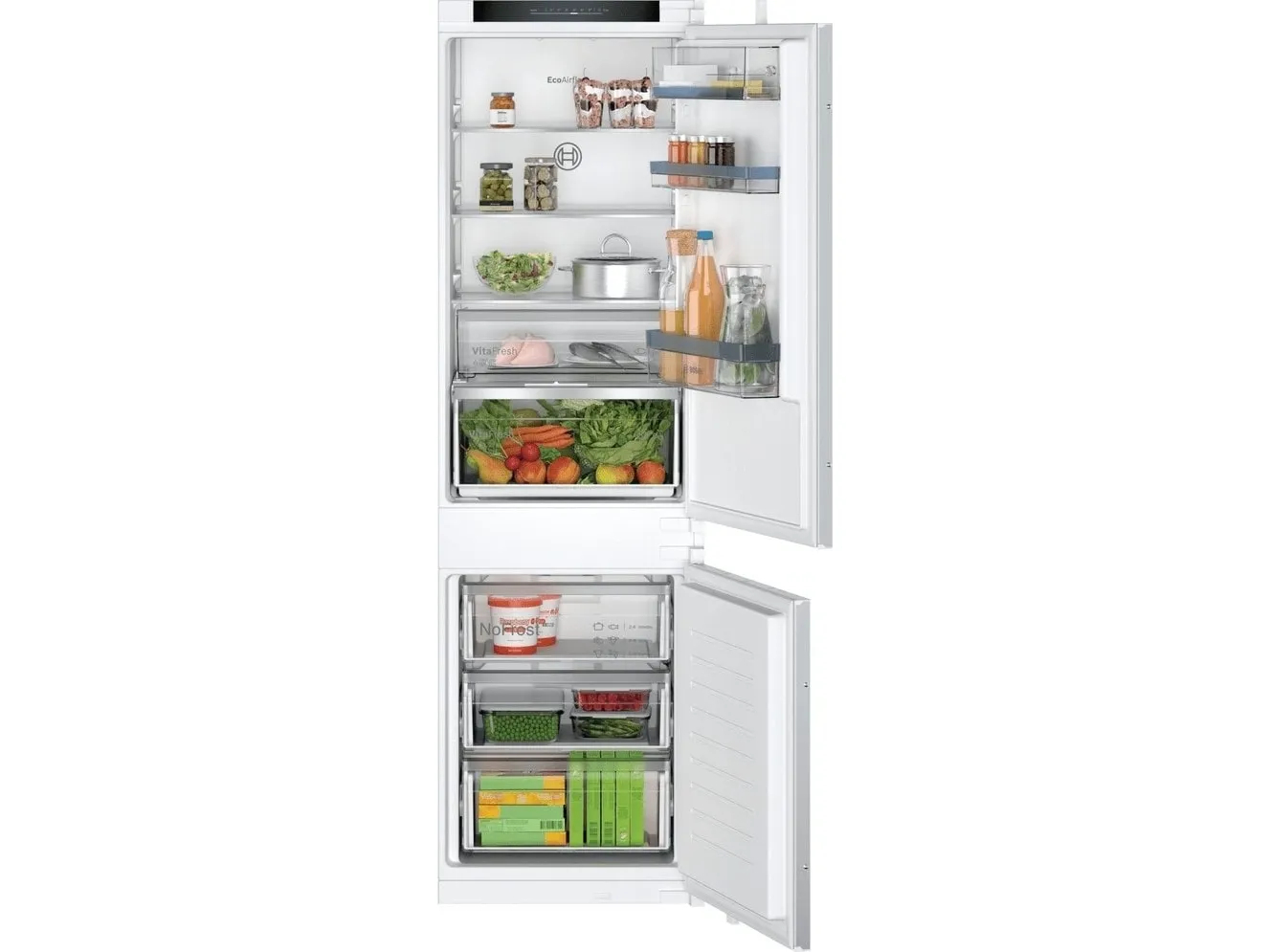 Frigo combi integrable No Frost BOSCH KIN86VSE0 177cm x 54cm Clase E. Serie 4 Frío, Frigorífico combinado. Congelador NoFrost , E, Integrable, 177x54x55 cm., 260 l., VitaFresh XXL. Sistema puerta deslizante.