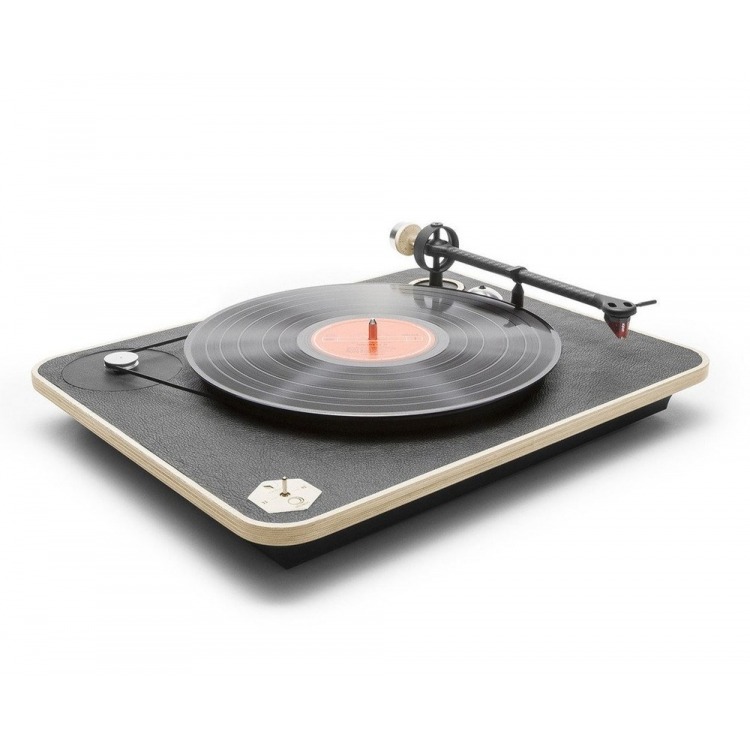 Platine vinyle en bois multiplis, cuir naturel basque et bras en carbone.