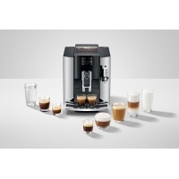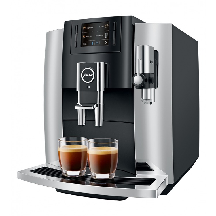 La E8 consigue satisfacer las demandas de aquellos que desean obtener de forma directa su café preferido. Los botones colocados en la parte frontal para las cuatro funciones Espresso, café, Cappuccino y espuma de leche permiten cumplir rápidamente sus deseos. La E8 es una máquina automática para dos tazas que, si se desea, puede preparar al mismo tiempo dos Espressos o dos cafés. Su moderno visualizador TFT a color permite una utilización intuitiva. Su gran recipiente de café en grano tiene una capacidad de 280 gramos, lo que le permitirá disfrutar siempre del mejor café sin interrupciones. La tapa de protección de aroma especial mantiene los granos siempre frescos. Su depósito de agua tiene una capacidad de 1,9 litros; garantiza la máxima autonomía y puede manipularse por la parte frontal. Sus formas simétricas y depuradas, líneas armoniosas y un gran amor por el detalle confieren a la E8 una estética muy elegante que se adapta a la perfección a cualquier cocina. Su elegante estética le seguirá fascinando con el paso de los años.