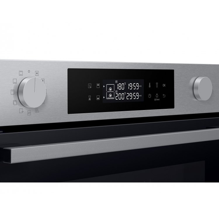 Horno - Dual Cook NV7B4430YAS/U1 - Pirolítico ( y a vapor), Guia Telescópica, Pantalla display LED Touch y Dual Dial, WIFI, 4 cristales en la puerta, acabado interior ceramico enamel. Incluye NATURAL STEAM (Cocina con vapor natural), AIR SOIS VIDE (Control uniforme de la temperatura). Autocook Clasificación energética: A+ Capacidad: 76 L Wifi: SI Decibelios: No aplica Consumo Kwh/año: No aplica Acabado: Negro/Inox Fábrica: Asia Exclusivo Grupos de Compra