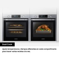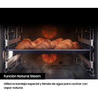 Horno - Dual Cook Flex ´´NV7B5750TDK/U1 - Pirolítico ( y a vapor), Guia Telescópica, Pantalla 2,25´´´´, WIFI, 4 cristales en la puerta, acabado interior ceramico enamel, Soft Close Door. Incluye NATURAL STEAM (Cocina con vapor natural), AIR SOIS VIDE, AIR FRY. Autocook Clasificación energética: A Capacidad: 76 L Wifi: SI Decibelios: No aplica Consumo Kwh/año: No aplica Acabado: Negro/Inox Fábrica: Asia Táctico Grupos de Compra´´