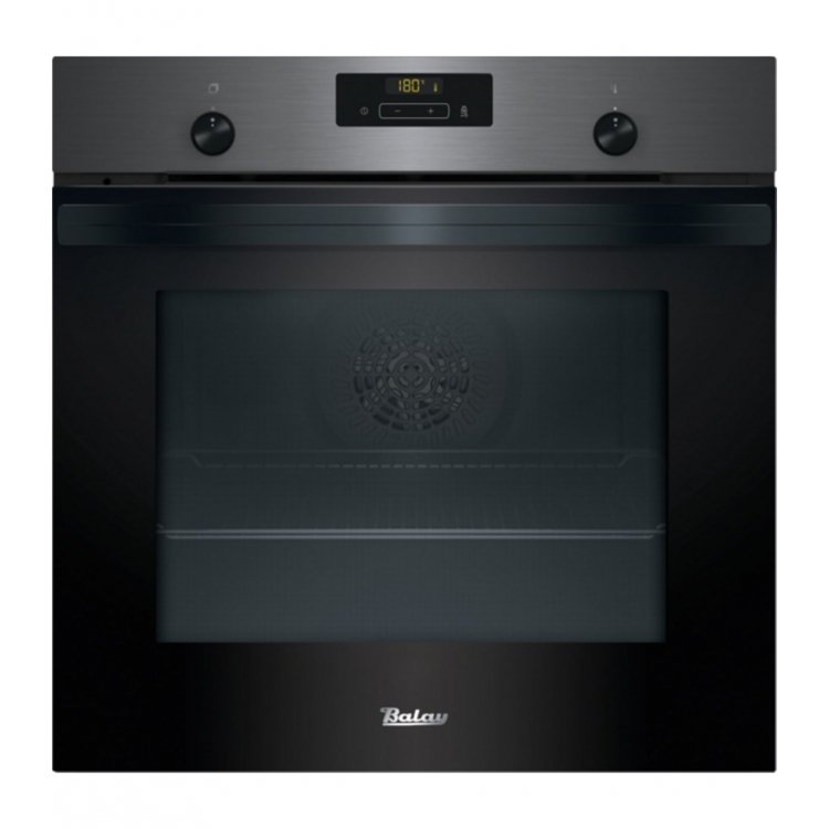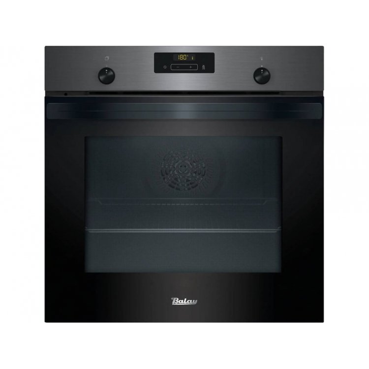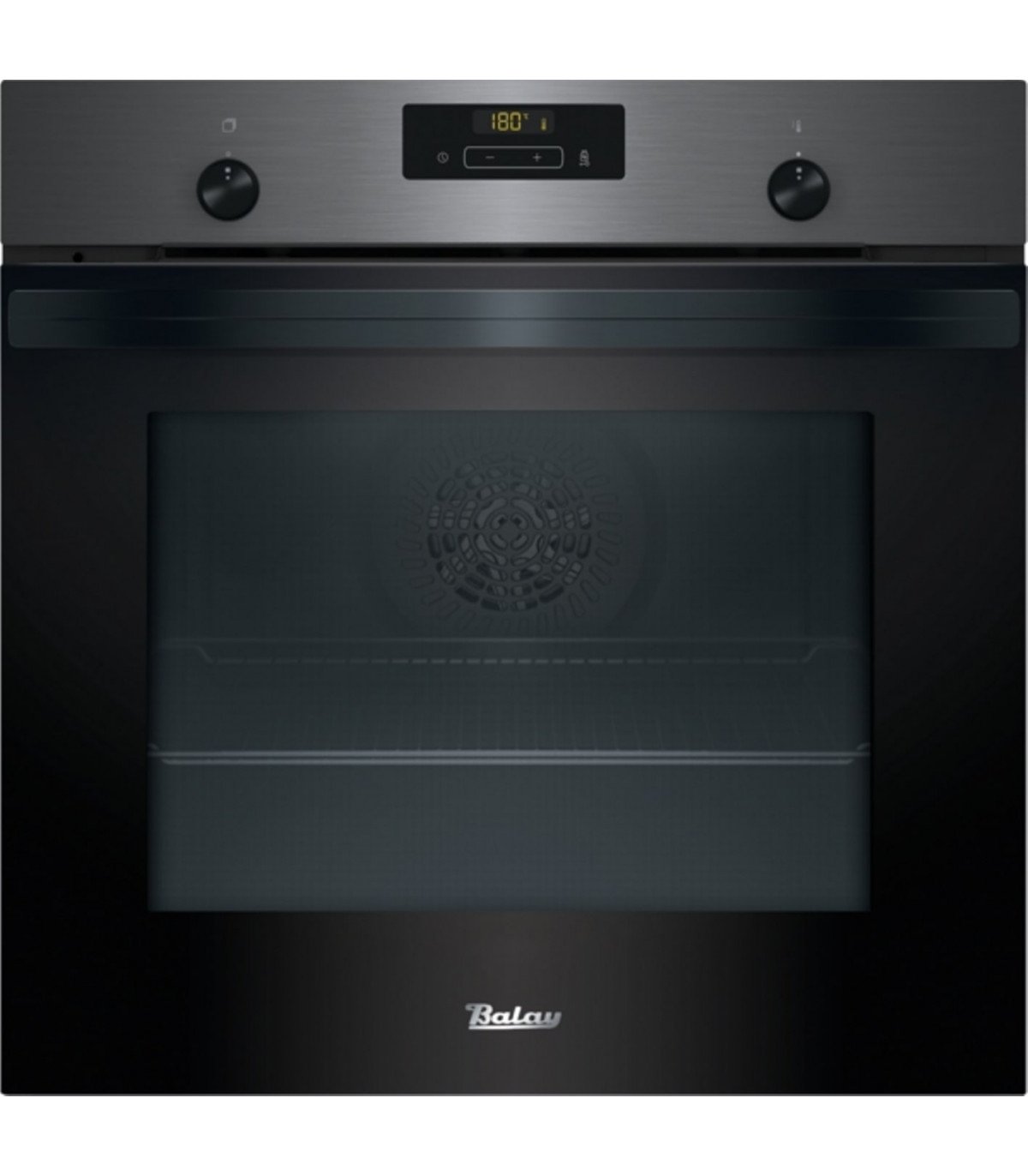 Serie Acero. Nuevo Horno Con Control Comfort BALAY, 3HB4841G2, Horno, Multifunción, A, Encastrable, 60 cm., 71 l., 7 F., Pirólisis y Aqualisis, Ap. Abatible, Grafito, Control Comfort, 10 recetas, Reloj electrónico con programación de inicio y paro, Raíles 1 nivel, Mandos ocultables, apertura y cierre amortiguado.