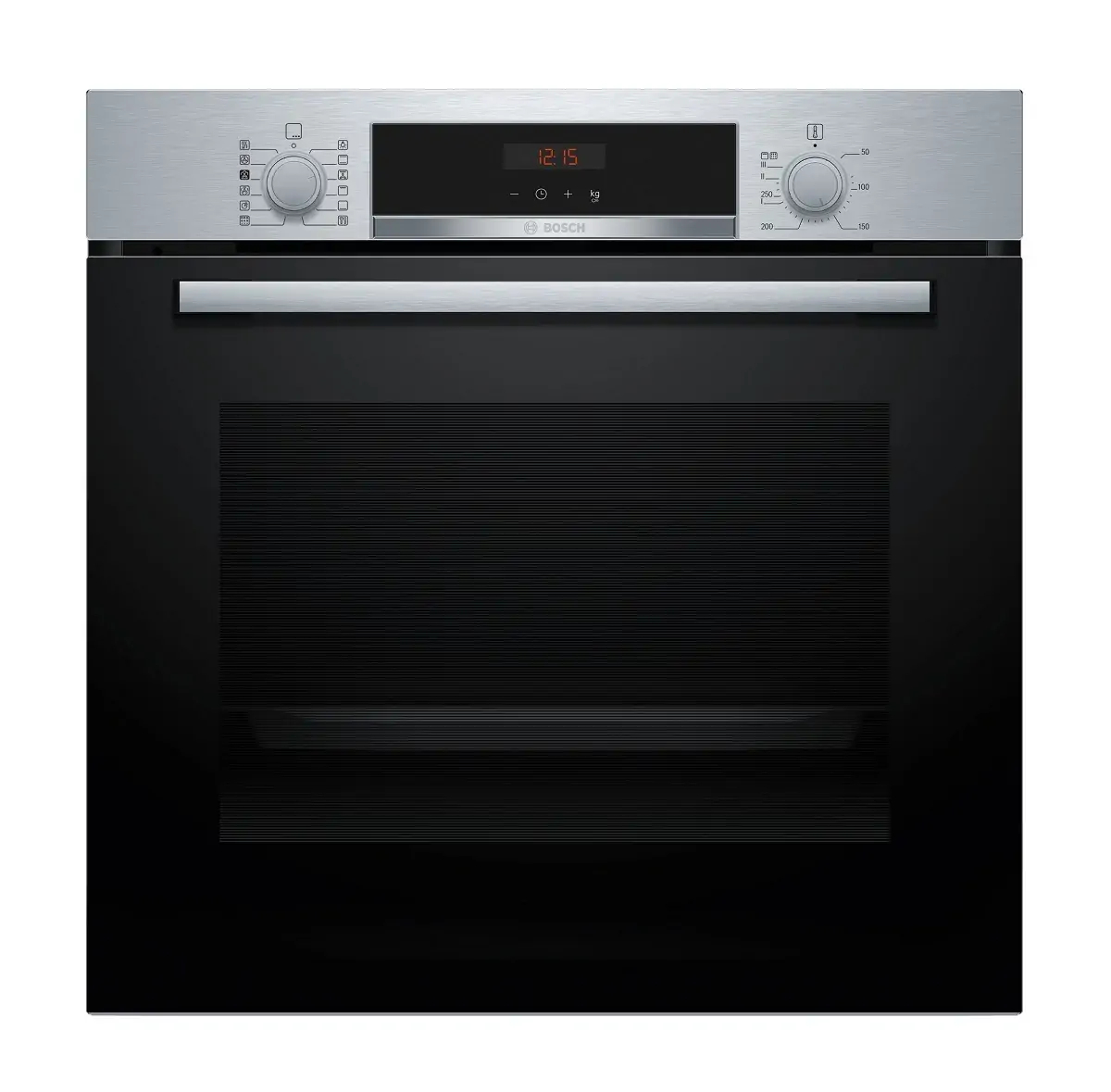 Hornos Multifunción Pirolíticos Serie 4 BOSCH, HQA574ES3, Horno, Multifunción con vapor añadido, A+, Integrable, 60 cm., 71 l., 8 F., Pirólisis & Asistente de limpieza con agua, Ap. Abatible, Cristal negro/inox, Display LED, Gourmet 10 recetas, Reloj electrónico con programación de inicio y paro, Railes 1 nivel, Mandos ocultables Like a Bosch