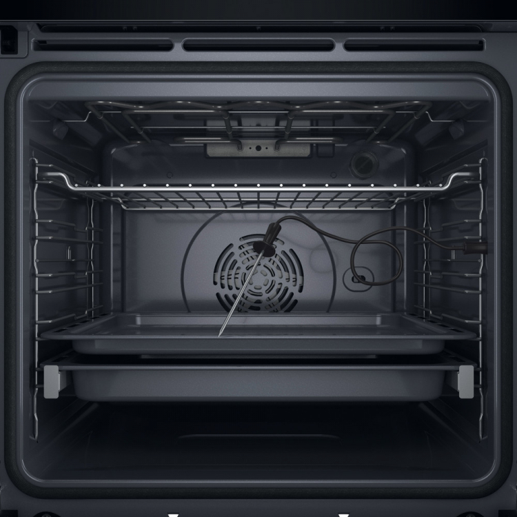 HORNO PIROLÍTICO | 73 litros | Steam + | CRISTAL NEGRO | A+ | MF8 | Sonda | 6th sense | Display LED | Steam+ (la forma ideal de cocinar platos saludables conservando la jugosidad y la nutrición de los ingredientes, con una simplicidad increíble, a través de la inserción de agua en el fondo de la cavidad) | 4 cristales | Puerta Soft Closing (cierre suave) | Ready2Cook (potente sistema de convección que permite alcanzar la temperaturadeseada sin necesidad de precalentar el horno, ahorrando hasta un 20% de energíay un 25% de tiempo) | Cook 4 | Guías telescópicas (1 nivel) | Bloqueo de seguridad para niños |1 rejilla | 2 bandejas | 597 x 595 x 564 mm (AxLxP)