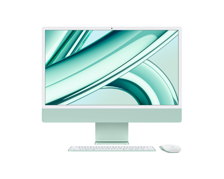 Un cambio de chip bestial.. . El mejor ordenador todo en uno del mundo ya era un espectáculo de color por fuera. Y ahora, con el chip M3, tiene más materia gris que nunca por dentro. La impresionante pantalla de 24 pulgadas te da todo el espacio que necesitas, y su diseño inconfundible alegra la vista lo pongas donde lo pongas. Prepárate para trabajar y divertirte, o hacer ambas cosas a la vez, a tus anchas.. . Solo 1,15 cm. . Fi.. Ní.. Si.. Mo.. M3. Detrás del irresistible diseño del iMac está el chip de Apple, que ahora da un salto de gigante con el M3.. El M3 integra el procesador, los gráficos, la memoria y mucho más en un solo chip. Y todo cabe en un ordenador tan fino que de perfil casi no lo ves y de frente no puedes dejar de mirarlo.. Puertos Thunderbolt para echar a volar.. Y conexión WiFi 6E para transferir archivos aún más rápido.. . Millones de píxeles nunca son demasiados.. Con su impresionante pantalla Retina de 24 pulgadas, el iMac te ofrece espacio de sobra para sacarle todo el partido a la multitarea, meterte de lleno en tus pelis y juegos, y hacer un montón de cosas más. Gracias a la resolución 4,5K, las imágenes tienen un nivel de detalle increíble y resplandecen con los 500 nits de brillo. Ojo, estamos hablando de cinco veces más resolución y casi un 70 % más brillo que el PC todo en uno de 24 pulgadas más vendido. Y con la gama cromática amplia P3, vas a alucinar en más de mil millones de colores. Da igual lo que sea, todo se ve de escándalo en el iMac.. . Lo último en altavoces Vas a causar sensación.. Cámara FaceTime HD a 1080p.. Dichosos los ojos.. Te presentamos la mejor cámara jamás integrada en un iMac. Gracias al procesador de señal de imagen, el M3 aumenta la calidad de las imágenes mediante el análisis y optimización de cada píxel a más de un billón de operaciones por segundo. De esta forma, se consigue una reducción de ruido avanzada, un rango dinámico enorme y una exposición más equilibrada para que se te vea siempre de cine. Además, el chip M3 y macOS trabajan juntos para que seas el centro de todas las miradas con el modo Superposición, que te permite compartir la pantalla durante las videollamadas sin que los demás te pierdan de vista.. . Micrófonos con calidad de estudio.. Da gusto oírte hablar así.. Charla con tu gente, graba un podcast o sorprende a tus seguidores con un directo. Hagas lo que hagas, los micros del iMac se aseguran de que todo lo que dices suene de maravilla. El conjunto de tres micrófonos con calidad de estudio reduce los acoples, y la tecnología beamforming minimiza el ruido de fondo para que solo se te escuche a ti, que es de lo que se trata.. . Sistema de audio de seis altavoces.. El sonido conquista el espacio.. El sistema de audio del iMac tiene potencia de sobra para que el sonido entre hasta la cocina. Los dos pares de woofers con cancelación de fuerza ofrecen graves profundos y definidos. Cada uno de ellos va combinado con un altavoz de agudos de alto rendimiento para equilibrar el sonido. El resultado es una experiencia envolvente que aporta una nueva dimensión a las películas, la música y todo lo que escuchas. Además, el iMac permite reproducir audio espacial con Dolby Atmos. Si a eso le sumas la pantalla Retina 4,5K, ya solo te faltan las palomitas.. . M3 y macOS.. Ahora todo se hace tan rápido que no hay color.. El chip M3 y macOS suman fuerzas para ofrecer las tecnologías más avanzadas y convertir el iMac en un prodigio del rendimiento, la eficiencia y la seguridad. Creado mediante un proceso de última generación, el M3 va que vuela incluso cuando tienes cientos de pestañas abiertas en el navegador, montas una presentación repleta de fotos y vídeos o exploras nuevos mundos con gráficos de quitar el hipo. El iMac es hasta cuatro veces más rápido que el modelo más vendido de PC todo en uno de 24 pulgadas con el último procesador Intel Core i7. Y por si fuera poco, es ultrasilencioso y no se calienta aunque trabaje a toda máquina. Es lo que pasa cuando el hardware, el software y el chip se diseñan juntos.. . Hasta x2. más rápido que el iMac con M1. . Hasta x2,5. más rápido que el iMac de 27 pulgadas con Intel más popular. . Hasta x4. más rápido que el iMac de 21,5 pulgadas con Intel más potente. El M3 pisa a fondo a la hora de jugar con una frecuencia de fotogramas un 50 % más rápida y ofrece una iluminación y reflejos más realistas gracias al trazado de rayos por aceleración de hardware.. . iMac y iPhone.. Equipazo.. Con el iMac tienes todo lo que te gusta del iPhone en una espectacular pantalla de 24 pulgadas. Y con el iPhone, todo lo que necesitas del iMac te acompaña vayas donde vayas. Juntos son un triunfo seguro.. Las llamadas y los mensajes te llegan al iMac para que no tengas que cambiar de dispositivo.. Con el Portapapeles Universal puedes copiar texto, imágenes y otros contenidos en tu iPhone y pegarlos en tu iMac.. También puedes usar el iPhone para hacer una foto o escanear un documento y que aparezca al instante en el iMac.. . Llénate los dedos de colores.. El iMac viene con teclado, ratón y trackpad a juego. El Magic Keyboard con Touch ID te permite desbloquear el iMac, cambiar de usuario, pagar con Apple Pay y descargar apps, todo de forma fácil y segura. Y con el Magic Mouse y el Magic Trackpad, moverte por la pantalla no puede ser más cómodo e intuitivo.. . Especificaciones:. . Chip. . Chip M3 de Apple. CPU de 8 núcleos (4 de rendimiento y 4 de eficiencia). GPU de 10 núcleos. Trazado de rayos por aceleración de hardware. Neural Engine de 16 núcleos. 100 GB/s de ancho de banda de memoria. . Motor multimedia. . Aceleración de hardware para H.264, HEVC, ProRes y ProRes RAW. Motor de decodificación de vídeo. Motor de codificación de vídeo. Motor de codificación y decodificación ProRes. Decodificación AV1. . Capacidad. . SSD de 512GB. . Memoria. . 8 GB de memoria unificada. . Pantalla. . Retina 4,5K de 24 pulg