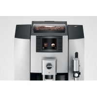 El diseño característico de las cafeteras automáticas de JURA destaca por su claridad y sus líneas marcadas. Los materiales de alta calidad y su procesamiento preciso refuerzan la calidad de alta gama de la moderna E8. Ya solo la forma indica calidad, funcionalidad y durabilidad. Sus detalles, como el depósito de agua ranurado o la plataforma para tazas cromada de alta calidad, ponen la guinda al diseño armónico y definido de la E8.