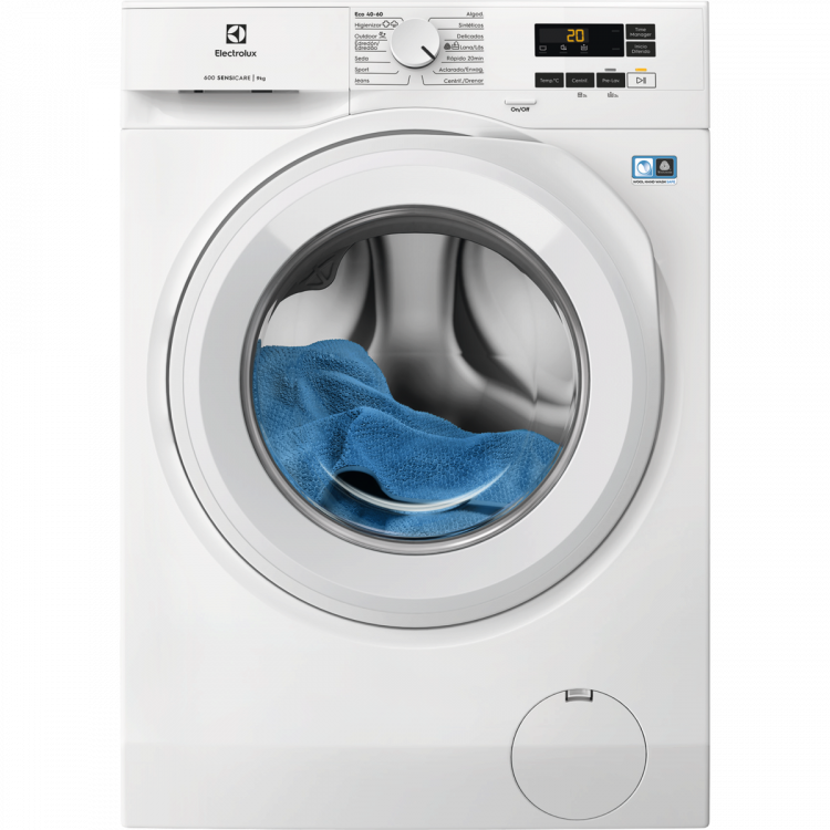 Lavadora 9Kg 1400Rpm ELECTROLUX EFI6194O1B Clase A SensiCare, 9kg, 1400rpm, Clase A, Cajón largo, Puerta blanca, Panel blanco, Motor Inverter, Woolmark Blue, Programa Higiene con vapor