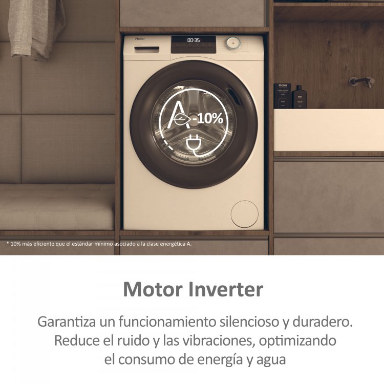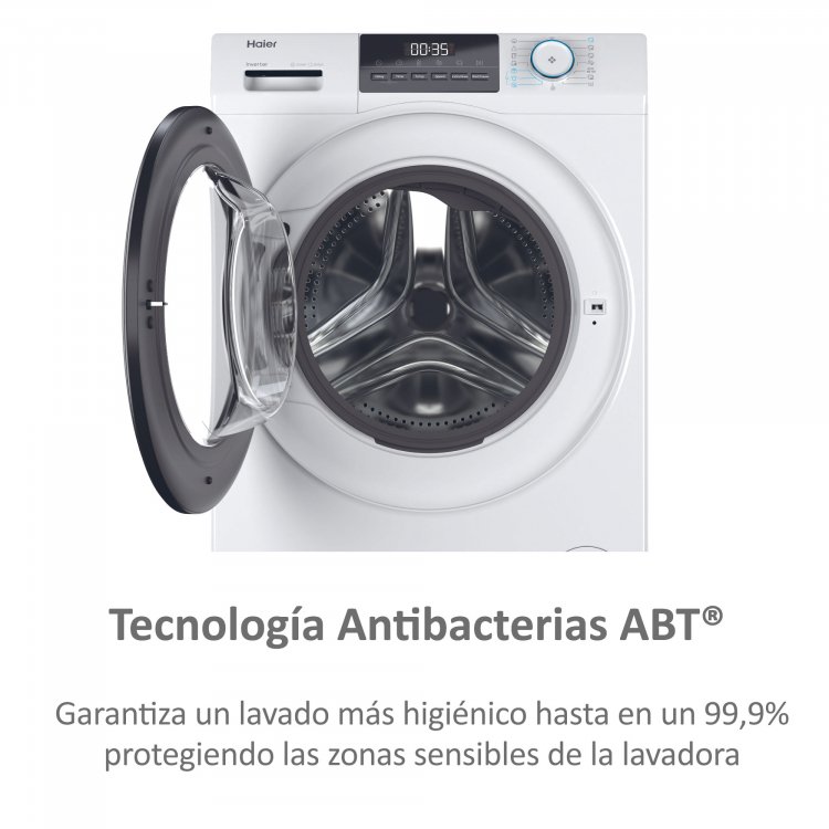 Las balanzas digitales internas pesan tu ropa y ajustan automáticamente el consumo de agua y la duración del ciclo en consecuencia. Esto garantiza excelentes resultados y un consumo mínimo de energía gracias al motor Inverter, ideal también para cargas ligeras. Otra solución inteligente de Haier que realmente marca la diferencia.