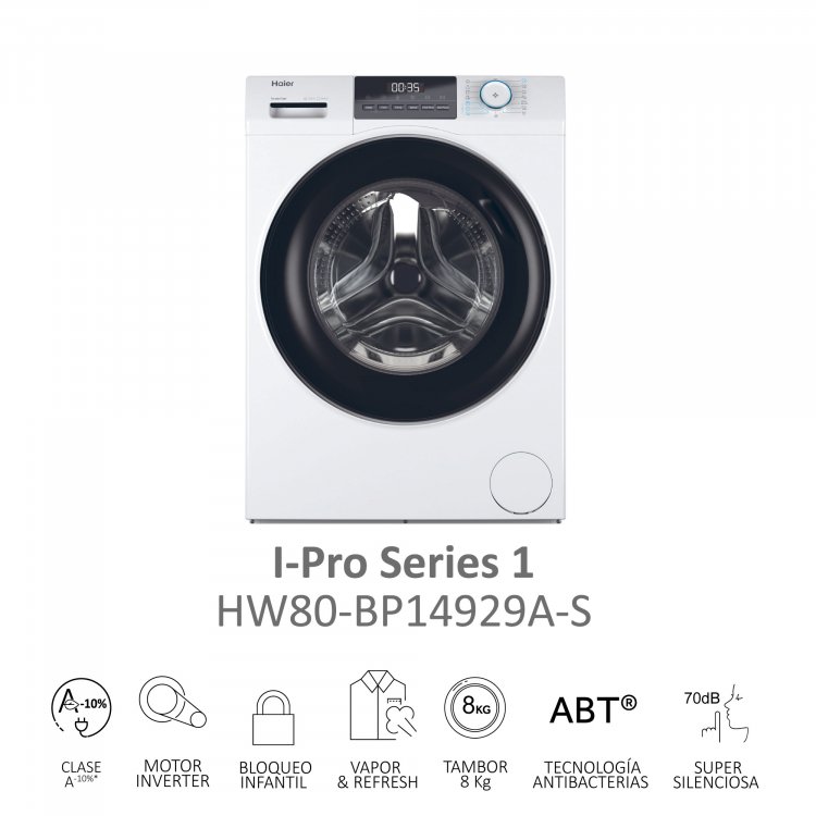Lavadora I-Pro Series 1 Libre Instalación, 8 Kg, 1400 RPM, Motor Inverter BPM, Clase A, Blanco, 15 programas, A x P x A (cm) 60x48x85
