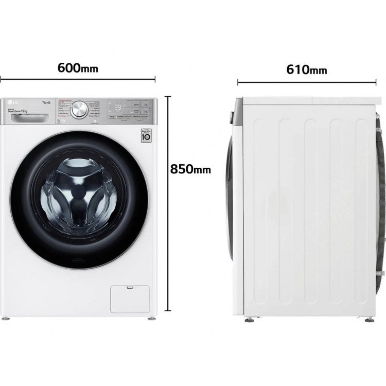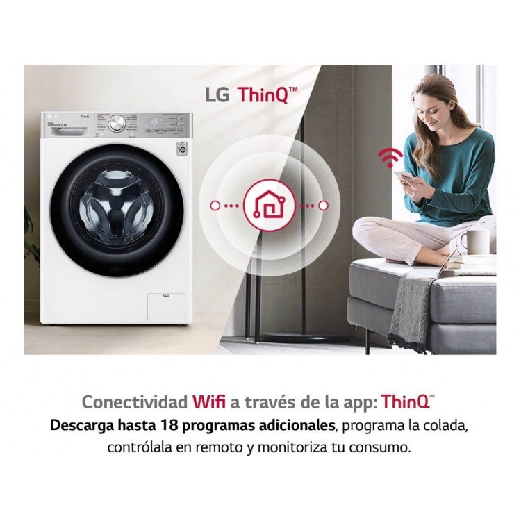 AI DIRECT DRIVE?¢:LA PRIMERA LAVADORA CON INTELIGENCIA ARTIFFICIAL AI DIRECT DRIVE?¢ QUE DETECTA LAS CARACTERíSTICAS DEL TEJIDO Y LA CARGA.LAVADO EN 39 MINUTOS:LAVADO EN 39 MINUTOS CON MEDIA CARGA, AHORRANDO HASTA UN 28% DE ELECTRICIDAD CON EL SISTEMA DE TúNEL DE LAVADO TURBOWASH 360ºAUTODOSIFICADOR:AUTODOSIFICADOR DE DETERGENTE EZDISPENSE?¢ - SMART DISPENSE DETECTA EL TAMAñO DE LA CARGA Y DETERMINE LA CANTIDAD CORRECTA DE DETERGENTE PARA GARANTIZAR EL RENDIMIENTO DEL LAVADOCONECTIVIDAD WIFI:CONECTIVIDAD WIFI A TRAVéS DE LA APP THINQ?¢ , COMPATIBLES CON ALTAVOCES INTELIGENTES.FICHA TéCNICA:CARACTERíSTICAS GENERALES:CAPACIDAD MáXIMA DE LAVADO (KG): 12 VOLUMEN DEL TAMBOR (L): 81 VELOCIDAD MáX DE CENTRIFUGADO: 1400 VELOCIDAD DE CENTRIFUGADO VARIABLE: 1400/1200/1000/800/400/SIN CENTRIFUGADO EFICIENCIA ENERGéTICA (ESCALA A A G): A CONSUMO ENERGéTICO POR 100 CICLOS (KWH): 55CONSUMO DE AGUA POR CICLO (L): 57EFICIENCIA DE CENTRIGUGADO: A NIVEL SONORO (DBA) CENTRIFUGADO: 70CLASE ACúSTICA DE CENTRIFUGADO: A AI DIRECT DRIVE CON INTELIGENCIA ARTIFICIAL: Sí INVERTER DIRECT DRIVE?¢: Sí PROGRAMAS CON VAPOR STEAM?¢: STEAM?¢ TURBOWASH?¢ TURBOWASH360?¢: (39MIN) 6 MOTION: Sí DISEñO:COLOR: BLANCO CARACTERíSTICAS PRINCIPALES:NúMERO DE PROGRAMAS:14 AñADIR PRENDA: Sí SMART DIAGNOSIS?¢ VERSION 3.0 WIFI - THINQ?¢: Sí REINICIO AUTOMáTICO: Sí STANDBY POWER ZERO: Sí Ã?NGULO DE APERTURA DE LA PUERTA (º): 150 BATEADORES: ACERO INOXIDABLE TIPO DE DISPLAY: LED BLANCO FINALIZACIóN DIFERIDA: 3-19 HRS INDICADOR INICIO / PAUSA: Sí SELECCIóN DE TEMPERATURA VARIABLE (?):FRíO/20/30/40/60/95? RECIRCULACIóN DE AGUA Y DETERGENTE Sí DIMENSIONES OJO DE BüEY (MM):300 MENSAJES DE ERROR: Sí DETECCIóN AUTOMáTICA DE LA CARGA Y CARACTERíSTICAS DE LOS TEJIDOS: Sí DISPENSADOR AUTOMáTICO DE DETERGENTE - SMART DISPENSE:Sí DIMENSIONES:ANCHO X ALTO X FONDO MM: 600 X 615 X 850 DIMENSIONES EMBALADO (ANCHO X ALTO X FODO) MM:660 X 705 X 890 PESO (KG: 73