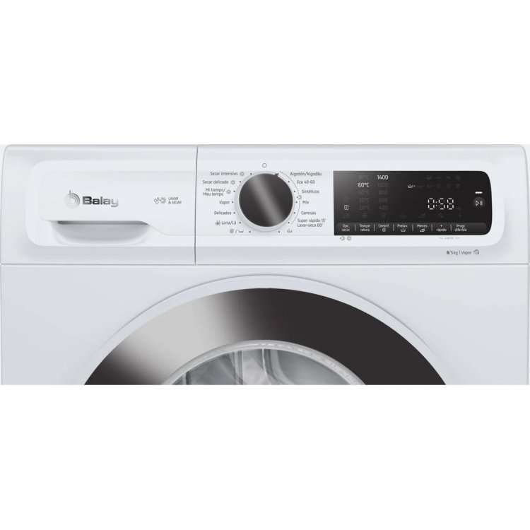 Lavadora-Secadora Extrasilencio (10 Años Gª Motor) BALAY, 3TW984B, Lavadora - Secadora, Carga Frontal, E, Libre instalación, 60 cm., 8/5 kg, 1.400 rpm, Blanco, ExtraSilencio, Display LED con recomendación de carga, Aquacontrol plus, programa vapor, pausa+carga, instalación bajo encimera en mueble de altura min. 85 cm.
