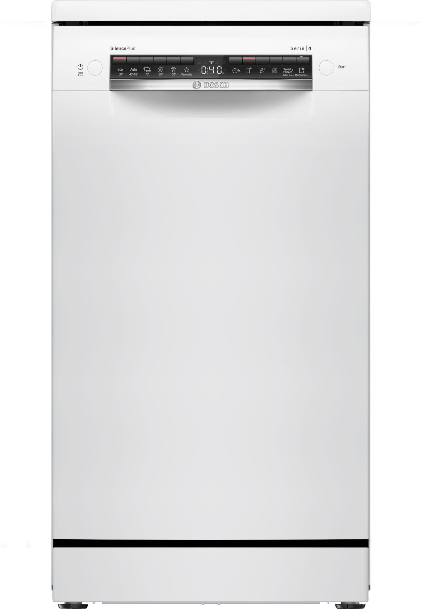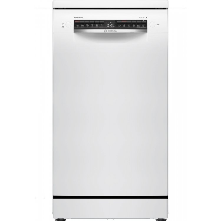 Lavavajillas libre instalación ancho 45 cm. Serie 4 - BOSCH, SPS4HMW49E, Lavavajillas, E, Libre instalación, 45 cm , 10 servicios, HC, Blanco, display+teclas, 3ª bandeja, Pgr..Auto 1h, Favorito. Prog. esp. limpieza cuba2.0. 3 f Extra seco, VSPlus. 9,5litros, 44db. -