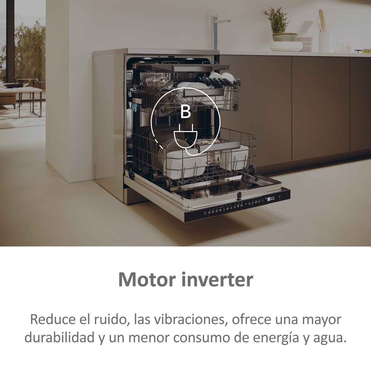 Libre instalación XF 6B2M3PX - Lavavajillas 60 Cm H20 - B - 16 servicios - 42 db - Inverter - INOX - Automatic open Door - hOn - Tercera bandeja