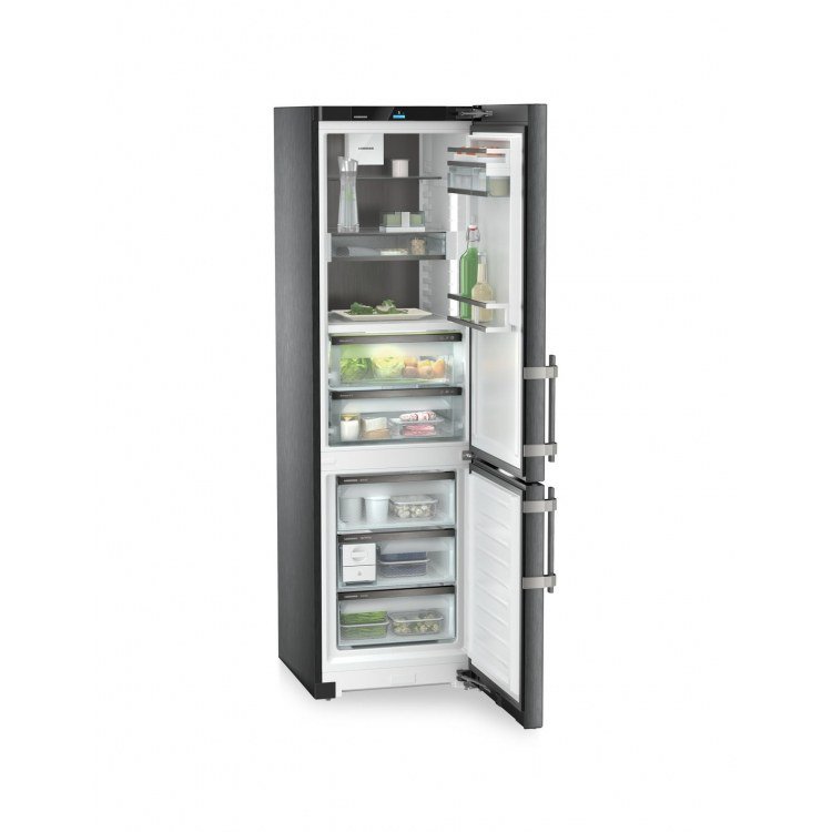 Liebherr CBNbsa 575i. Combinados NoFrost con BioFresh CBNbsa 575i - Clasificación energética: A - Nivel de Ruido (dB): 33 dB - Clase emisión ruido: B - Gama: prime - Alto / Ancho / Fondo: 201,5 / 59,7 / 67,5 cm - Cajones Congelador: 3 - Refrigerador con zona: BioFresh Frutas & Vegetales,BioFresh Carnes ? Lacteos - Volumen útil refrigerador: 159.9 l - Volumen útil BioFresh: 99.2 l Volumen útil Congelador: 103 l Color: BlackSteel