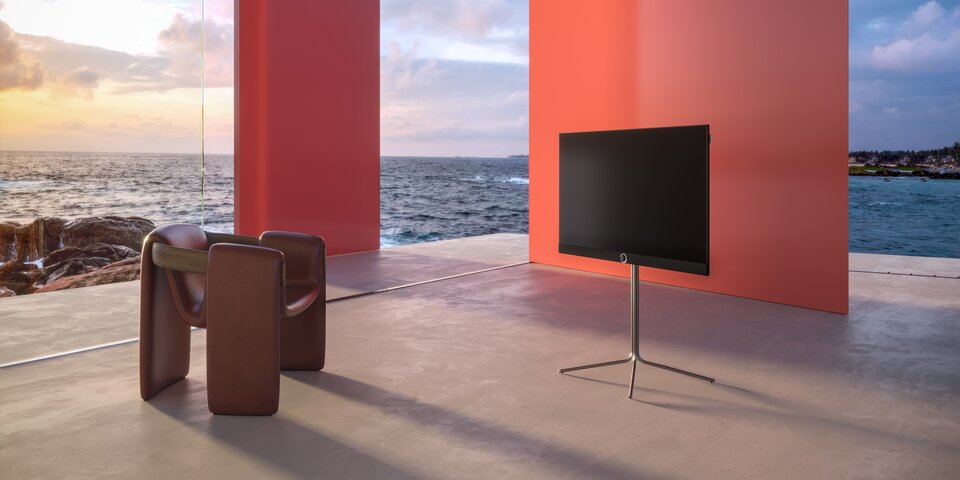 El elegante y sofisticado diseño de 360° del Loewe callas, con barra de sonido revestida de tela, guía de cables integrada, discretas cubiertas, conexiones ocultas y carcasa lacada, no tiene parangón en el sector. La construcción mecánica es ingeniosa y robusta, con sólidos pernos VESA fijados en la estructura metálica del aparato. Un soporte de sobremesa giratorio de metal con acabado en cromo le confiere un aspecto refinado.
