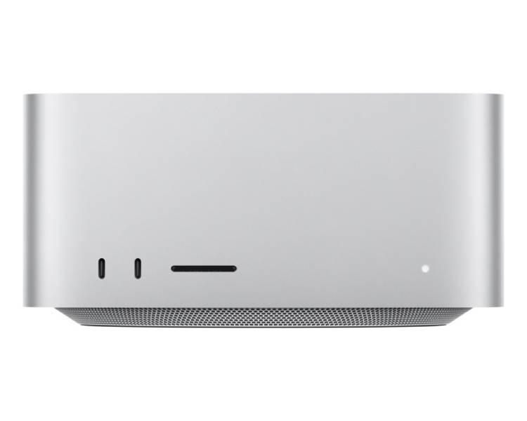 M2 Ultra. . Después de meterse en el bolsillo a profesionales de todo el mundo, el Mac Studio vuelve a marcar un hito con dos chips revolucionarios: el ultraveloz M2 Max y el supersónico M2 Ultra. Puede parecer un simple ordenador de mesa, pero nada más lejos de la realidad. Es un todoterreno que combina un rendimiento colosal y múltiples conexiones en un diseño tan compacto que te permite montar un estudio completo donde tú quieras.. El M2 Ultra está creado a partir de dos chips M2 Max, pero es mucho más que la suma de sus partes. Si creías que hacer simulaciones de partículas complejas o renderizar entornos 3D gigantescos era tarea imposible, cambia el chip. Además, como su motor multimedia ofrece el doble de recursos, el M2 Ultra es capaz de reproducir hasta 22 secuencias de vídeo ProRes 422 8K, algo impensable para otros ordenadores.. CPU de 24 núcleos. GPU de hasta 76 núcleos. Hasta 192 GBde memoria unificada. 800 GB/s de ancho de banda de memoria. . Cabe aquí.. . Gracias a la eficiencia de los chips de Apple, el Mac Studio permite desmelenar todo el poder del M2 Max y M2 Ultra sin abarrotar tu espacio de trabajo. Cabe debajo de casi cualquier monitor y pone a tu alcance toda la potencia y la conectividad que necesitas. Comodidad al servicio de la creatividad.. . Un tipo frío y tranquilo.. En su carcasa cuadrada de 19,7 cm de lado, el Mac Studio esconde un revolucionario sistema térmico diseñado para que el M2 Max y M2 Ultra realicen las tareas más exigentes a velocidades siderales. Y aun con tanto poder, el Mac Studio apenas emite un susurro. Disfruta el silencio.. . Conexiones al poder. El Mac Studio se adelanta a tus necesidades con 12 puertos de alto rendimiento, porque a práctico tampoco le gana nadie. Transfiere fotos y vídeos con un lector de tarjetas SDXC. Conecta televisores o monitores a la salida HDMI, que admite resoluciones de hasta 8K. Enlaza accesorios de última generación por Bluetooth 5.3 y navega hasta el doble de rápido con WiFi 6E. . Studio Display y Mac Studio. Tiki y Taka. Hemos diseñado el Mac Studio junto al Studio Display para crear el tándem profesional definitivo. Con una impresionante pantalla Retina 5K de 27 pulgadas, cámara con ultra gran angular de 12 Mpx y Encuadre Centrado, un conjunto de tres micrófonos con calidad de estudio, un sistema de sonido de seis altavoces con audio espacial y la opción de vidrio nanotexturizado, el Studio Display le pone la guinda a tu Mac. Y qué guinda. . Transforma tu estudio.. Al mirar el Mac Studio cuesta creer que tantos puertos quepan en algo tan pequeño. Está diseñado para despejar tu espacio de trabajo y desatar tu creatividad.. . macOS y apps profesionales. Optimizados para el chip de Apple. macOS no solo es potente, intuitivo y fiable gracias a sus actualizaciones, también se ha diseñado para evolucionar con los chips de Apple. Eso significa que el sistema aprovecha automáticamente las mejoras gráficas, la increíble memoria y el aprendizaje automático avanzado del M2 Max y el M2 Ultra. Y con las miles de apps disponibles, vas a trabajar, jugar y crear como nunca habías imaginado.. . Usa la realidad aumentada para ver el Mac Studio en tu mesa.. Abre esta página con Safari en un iPhone o iPad.. . Diseñado pensando en el planeta.. Materiales 100 % reciclados en los imanes y en la soldadura de la placa base principal, embalaje sostenible y una cadena de suministro más ecológica. Todo en el Mac Studio está pensado para reducir su impacto medioambiental.. Especificaciones:. . Chip. . Chip M2 Ultra de Apple. CPU de 24 núcleos (16 núcleos de rendimiento y 8 de eficiencia). GPU de 60 núcleos. Neural Engine de 32 núcleos. 800 GB/s de ancho de banda de memoria. Motor multimedia. Aceleración por hardware para H.264, HEVC, ProRes y ProRes RAW. Dos motores de decodificación de vídeo. Cuatro motores de codificación de vídeo. Cuatro motores de codificación y decodificación ProRes. Configurable con:. M2 Ultra con CPU de 24 núcleos, GPU de 76 núcleos y Neural Engine de 32 núcleos. . Memoria. . 64 GB. 64 GB de memoria unificada. . Capacidad. . 1 TB. SSD de 1 TB. . Compatibilidad con monitores. . M2 Ultra. Admite hasta ocho monitores a la vez:. Ocho monitores con resolución hasta 4K a 60 Hz. Seis monitores con resolución hasta 6K a 60 Hz. Tres monitores con resolución hasta 8K a 60 Hz. Salida de vídeo digital Thunderbolt 4. Salida DisplayPort nativa a través de USBC. Salida de vídeo para monitor HDMI. Admite un monitor con resolución hasta 8K a 60 Hz o resolución 4K a 240 Hz. Compatibilidad con frecuencia de actualización variable (VRR), HDR y audio multicanal. . Audio. . Altavoz integrado. Toma para auriculares de 3,5 mm y compatibilidad avanzada con auriculares de alta impedancia. Puerto HDMI compatible con salida de audio multicanal. . Conexiones y ampliación. . Cuatro puertos Thunderbolt 4 compatibles con:. Thunderbolt 4 (hasta 40 Gb/s). DisplayPort. USB 4 (hasta 40 Gb/s). USB 3.1 Gen 2 (hasta 10 Gb/s). Dos puertos USBA (hasta 5 Gb/s). Puerto HDMI. Ethernet de 10 Gb. Toma para auriculares de 3,5 mm. Parte delantera (M2 Ultra):. Dos puertos Thunderbolt 4 (hasta 10 Gb/s). Ranura para tarjetas SDXC (UHSII). . Comunicaciones. . Wifi. WiFi 6E (802.11ax)2. Bluetooth. Bluetooth 5.3. Ethernet. Ethernet de 10 Gb (NBASET compatible con Ethernet de 1 Gb, 2,5 Gb, 5 Gb y 10 Gb mediante conector RJ45). . Dimensiones y peso. . Alto: 9,5 cm. Ancho: 19,7 cm. Fondo: 19,7 cm. Peso (M2 Ultra): 3,6 kg. . Requisitos eléctricos y de funcionamiento. . Tensión: de 100 a 240 V de CA. Frecuencia: de 50 a 60 Hz, monofásica. Potencia máxima continua: 370 W. Temperatura de funcionamiento: de 10 a 35 ºC. Temperatura de almacenamiento: de -40 a 47 ºC. Humedad relativa: del 5 al 95 % sin condensación. Altitud máxima de funcionamiento: probado hasta 5.000 m. . Sistema operativo. . macOS. macOS es el sistema operativo de ordenador más avanzado del mundo. Todo lo que haces con el Mac es 
