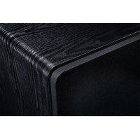 El recinto MDF macizo está disponible en color negro ceniza o moca. En el caso del subwoofer Alpha RS12 tiene una anchura de 360 mm y una altura de 465 mm. La funda de tela estándar se puede quitar fácilmente y deja así a la vista el impresionante chasis de bajos.