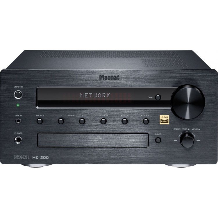 Magnat MC 200. El Magnat MC 200 no sólo ofrece la variedad de medios de comunicación actuales de CD, Bluetooth, FM y DAB+, sino también un amplio acceso a la música a través de WLAN o cable de red. Es compatible con Spotify, radio por Internet y reproducción de música de la red doméstica (DLNA).