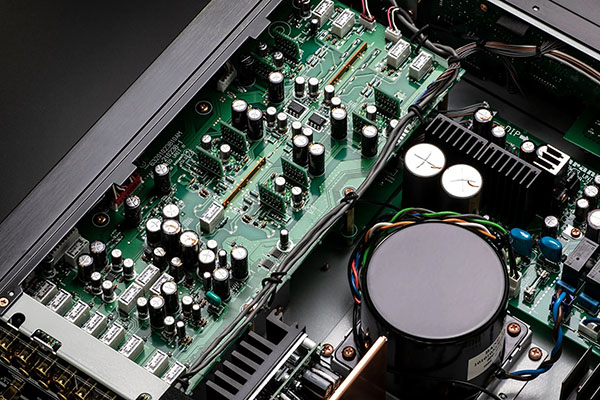 Marantz desarrolló sus propias placas de circuito impreso ejecutadas con componentes discretos (los denominados Módulos Amplificadores Hiperdinámicos o HDAM) para sustituir a los amplificadores basados en “chips” empleados por otras marcas. Utilizando componentes discretos de montaje en superficie (SMD) con trayectos de señal ultracortos idénticos para los canales izquierdo y derecho, los HDAM superan ampliamente los amplificadores operacionales monolíticos convencionales en parámetros como el Slew Rate y el nivel de ruido. El resultado es un sonido mucho más dinámico, preciso y detallado.