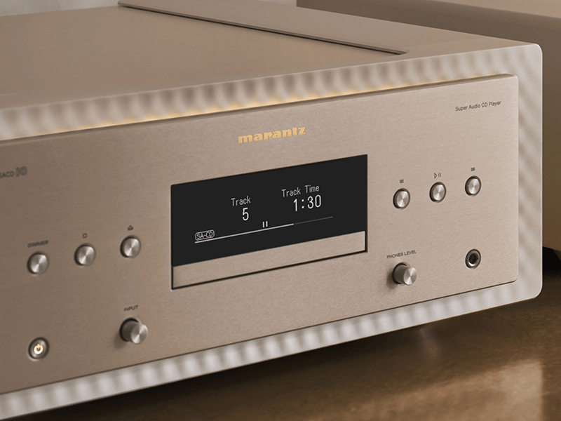 Con una superficie de control de aluminio cepillado, detalles de acabado hilado, una estructura de aluminio de sección gruesa y un chasis de triple capa bañado en cobre, el Marantz SACD 10 es único en su clase. Disponible en dos combinaciones de colores, Marantz Black y Marantz Champagne, para complementar cualquier entorno.