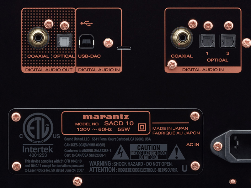 El reproductor de CD Marantz SACD 10 admite fuentes balanceadas a través de DAC de tipo USB-A y de tipo USB-B, además de compatibilidad con DSD256 y PCM 384 kHz / 32 bits. Las opciones de conectividad también incluyen entradas y salidas digitales coaxiales y ópticas, y salidas analógicas XLR y RCA de nivel fijo.