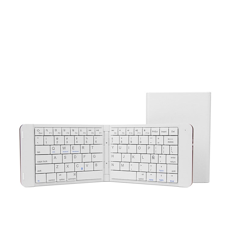 Práctico y elegante. Un teclado de reducidas dimensiones y elegante diseño que podrás llevar encima para usar con tu tablet ya que su formato plegable permite llevarlo en cualquier bolsa.. Conéctalo por Bluetooth y disfruta de su cómoda escritura con tu tablet o smartphone.. Especificaciones. ∣dot; 80 teclas. ∣dot; Batería recargable 90mAh. ∣dot; Compatible Windows / iOS / Android. ∣dot; Bluetooth 3.0. ∣dot; Mateial: ABS y aluminio. ∣dot; Dimensiones (abierto): 27,5x8,9x0,68 cm