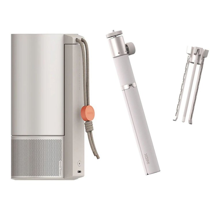 Pack proyector + soporte de pie Xgimi MoGo 3 Pro Bundle. Modo Doble Versátil: Soporta sin esfuerzo hasta 4.2 kg para una estabilidad firme, ya sea en un escritorio o como soporte de suelo. Rotación Panorámica de 360°: Gira a la perfección con un simple giro, logrando cualquier ángulo para una experiencia de visualización óptima. Portátil y Duradero: Con solo 485g y plegándose hasta 33.5 cm, este soporte está hecho de materiales resistentes, lo que lo hace fácil de transportar y perfecto para aventuras al aire libre.